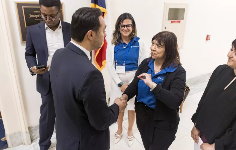 AKF Ambassadors Ronnie Behrend and Michelle Osuna greet Rep. Joaquin Castro (TX).
