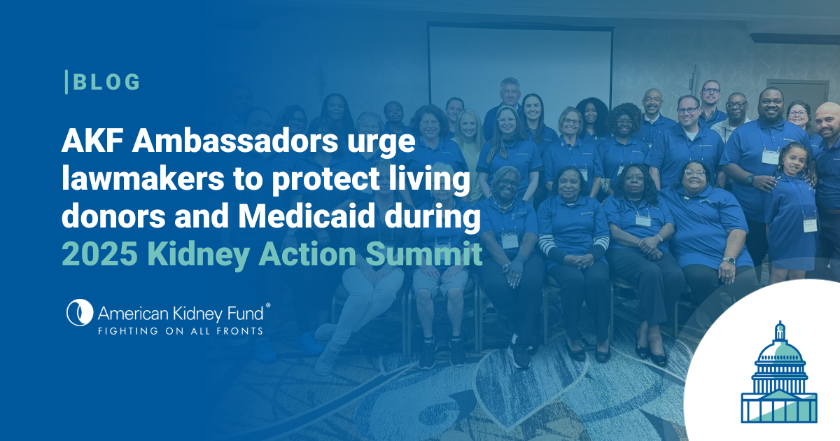 The second: urging their elected officials to protect Medicaid as Congress considers significant spending cuts to the program. Medicaid is a crucial safety net for people with and at risk for kidney disease. Nearly half of all dialysis patients rely on Medicaid coverage in addition to their Medicare coverage, so this issue is critical to the kidney community, especially low-income patients who would not be able to afford their health care costs without Medicaid.