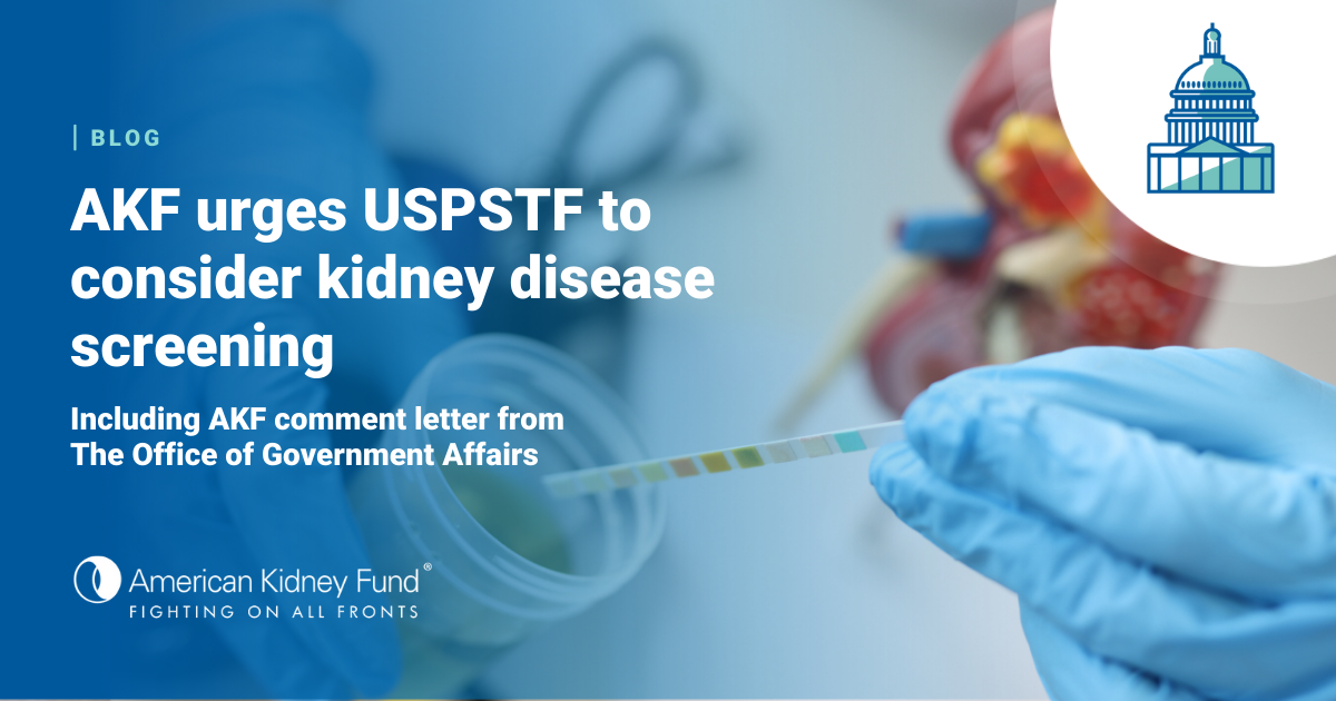 In late August, the American Kidney Fund (AKF) wrote to the U.S. Preventive Services Task Force (USPSTF) urging them to develop a kidney disease screening recommendation. You can read the full version of our letter here.