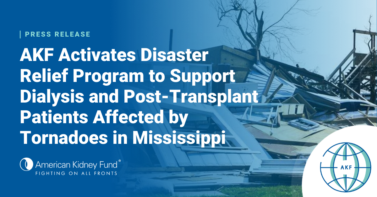 American Kidney Fund Activates Disaster Relief Program to Support Dialysis and Post-Transplant Patients Affected by Tornadoes in Mississippi