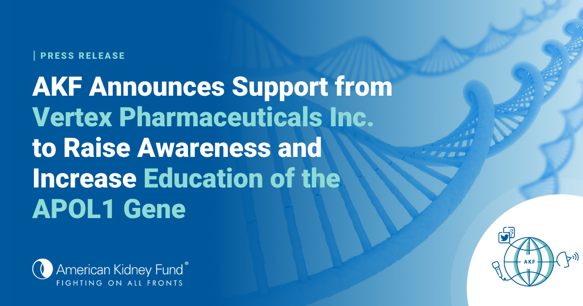 American Kidney Fund Announces Support from Vertex Pharmaceuticals Inc. to Raise Awareness and Increase Education of the APOL1 Gene and its Link to Kidney Disease