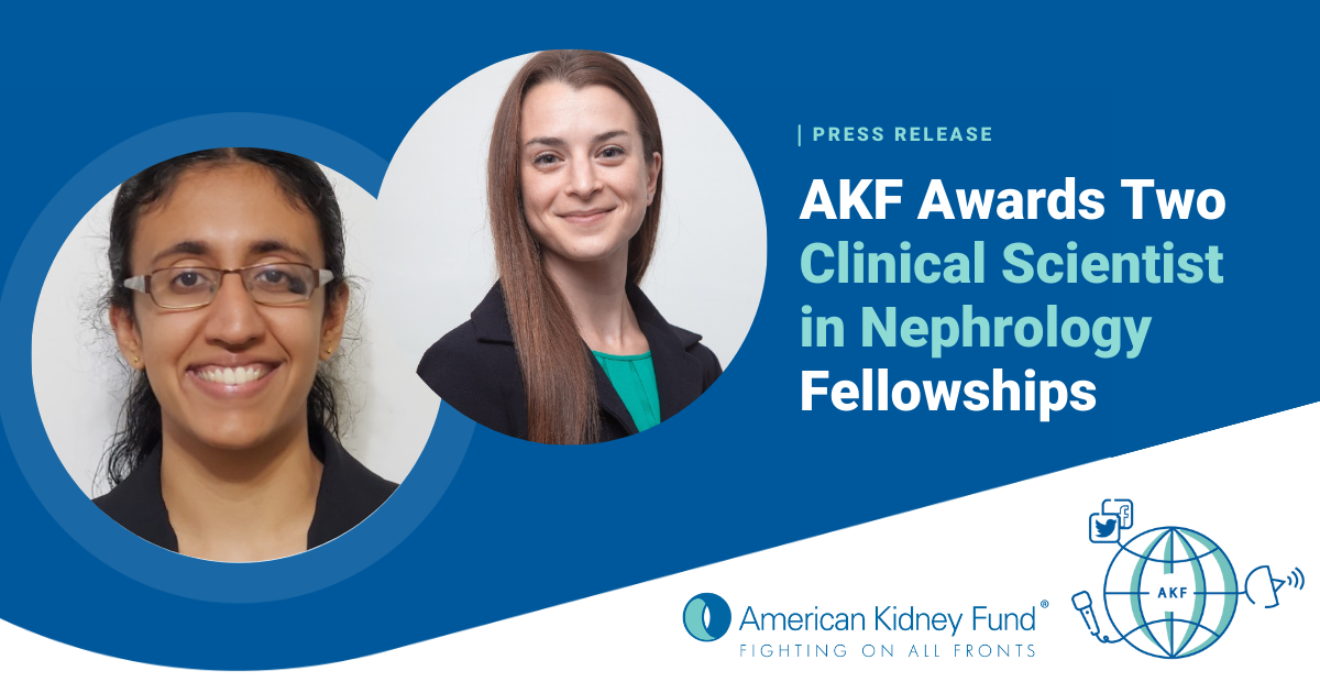 ROCKVILLE, Md. (April 3, 2023) — Today the American Kidney Fund (AKF) announced the recipients of this year's Clinical Scientist in Nephrology (CSN) fellowship program, in which promising researchers work to improve the quality of care for people living with kidney disease and promote clinical research in nephrology. Dr. Alexandra Bicki, a pediatric nephrology fellow at the University of California, San Francisco, will be working on identifying facilitators and barriers to home dialysis and living kidney donor transplantation among adolescents and young adults, while Dr. Nivetha Subramanian, a nephrology fellow at Stanford Medicine, will be working on a project related to disparities in COVID-19 and vaccine booster uptake in dialysis.