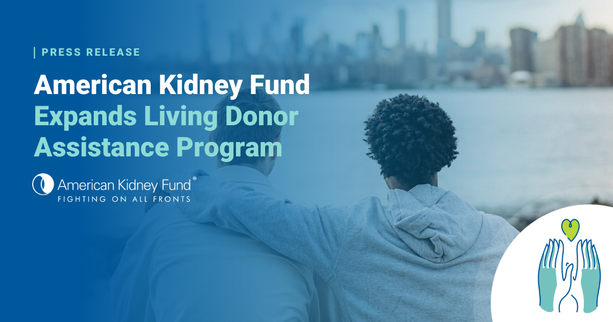ROCKVILLE, Md. (Sept. 27, 2024) — Today, the American Kidney Fund (AKF) announced that it has launched a new living donor program in the Washington, D.C. metropolitan area to provide one-time financial assistance grants up to $2,500 to support people who are donating a kidney to a recipient in the Washington, D.C. metropolitan area. The expansion of AKF's living donor assistance program, made possible with generous support from the Sievers Family Charitable Fund, will help ensure that the out-of-pocket costs associated with living organ donation are not an obstacle to donating a kidney to someone in need.