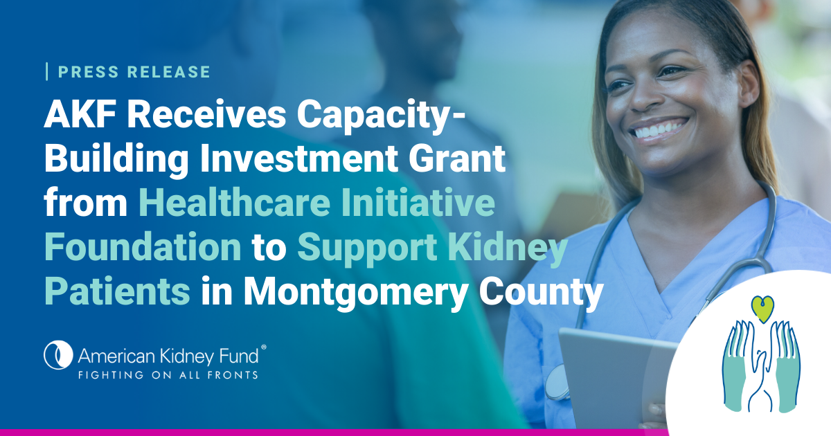 American Kidney Fund Receives Capacity-Building Investment Grant from Healthcare Initiative Foundation to Support Safety Net Grants for Kidney Patients in Montgomery County