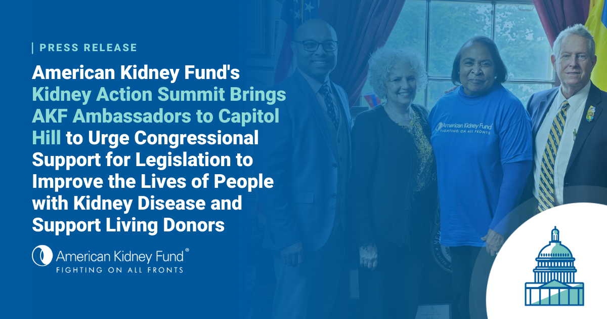 American Kidney Fund's Kidney Action Summit Brings AKF Ambassadors to Capitol Hill to Urge Congressional Support for Legislation to Improve the Lives of People with Kidney Disease and Support Living Donors