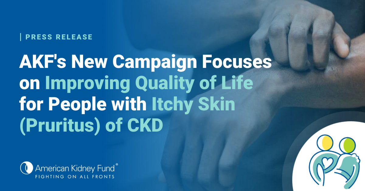 ROCKVILLE, Md. (June 21, 2022) — The American Kidney Fund (AKF) today launched a new education and awareness campaign that will raise awareness of pruritus and help people with chronic kidney disease-associated pruritus better understand this condition, which causes distressing itchy skin and has a significant impact on quality of life. AKF's educational campaign has been developed with support from Vifor Pharma.