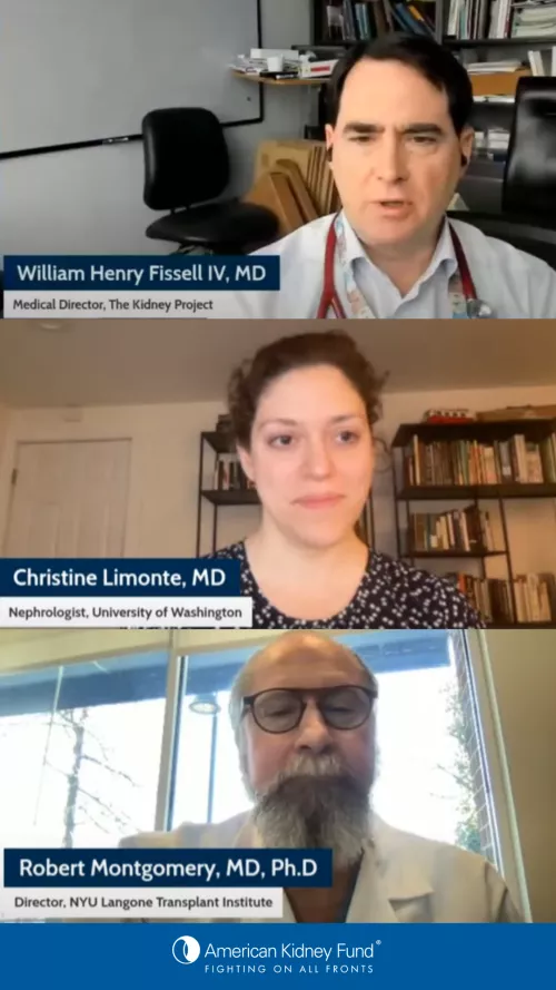 This past March, the American Kidney Fund (AKF) hosted its fifth annual Kidney Action Week ™, a weeklong, free virtual conference for patients, caregivers, health professionals and researchers with a series of sessions related to kidney disease. Each day of sessions focused on a theme including Living Well with Kidney Disease, Prevention and Awareness through Community Action, and Navigating the Path to Kidney Health Equity. The week wrapped up with sessions focused on Kidney Innovation. The panel, which included renowned nephrologists, shared their research and projects that are shaping the future of chronic kidney disease care.