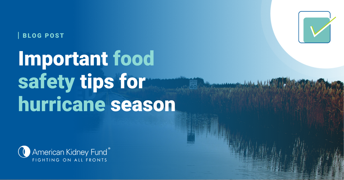 Hurricane season has started and to make sure you are prepared, the American Kidney Fund's Kidney Kitchen® collaborators, USDA's Food Safety and Inspection Service (FSIS) encourage you to consider making a "hurricane plan" for food safety.