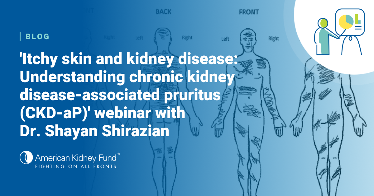 Chronic kidney disease-associated pruritus (CKD-aP), also known as itchy skin, is a common, often-irritating symptom for people with chronic kidney disease, especially those on dialysis. Why does it happen, and what can you do about it? Dr. Shayan Shirazian, a nephrologist at Columbia University Medical Center, joined us for a webinar to help answer these questions, discussing itchy skin and ways to manage it.