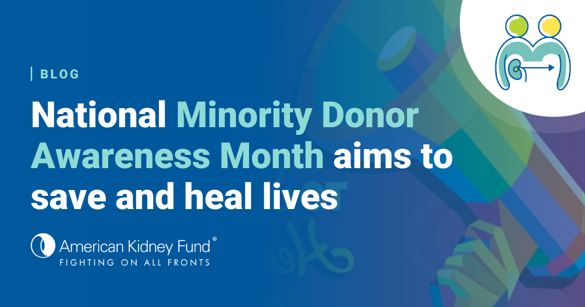 With the goal of saving and improving the quality of life of diverse communities by creating a positive culture for organ, eye and tissue donation, the National Organ, Eye and Tissue Donation Multicultural Action Group (NMAG) is celebrating National Minority Donor Awareness Month, a collaborative awareness initiative that kicked off Aug. 1. The American Kidney Fund (AKF) is proud to have joined NMAG earlier this year and is pleased to amplify efforts to bring heightened awareness to the impact of health disparities in organ donation and transplantation on communities of color.