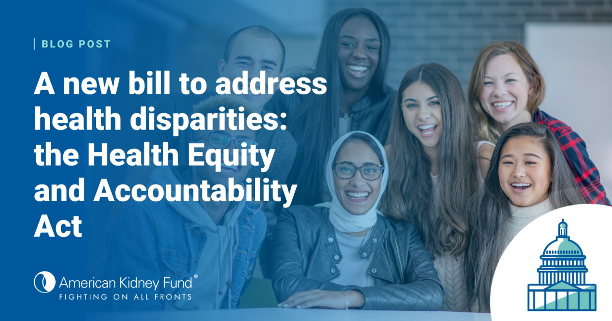 On April 26, Congresswoman Robin Kelly (D-IL), chair of the Congressional Black Caucus Health Braintrust, introduced the Health Equity and Accountability Act (HEAA), or H.R. 7585. This bill aims to make our health care system more equitable and accessible for everyone. It calls for Congress to create policies to address the connection between health inequities and demographic factors, including race and ethnicity, immigration status, age, disability, sex, gender, sexual orientation, gender identity and expression, language and socio-economic status. HEAA already has 59 cosponsors, as well as support from 60 stakeholder groups, including the American Kidney Fund (AKF).
