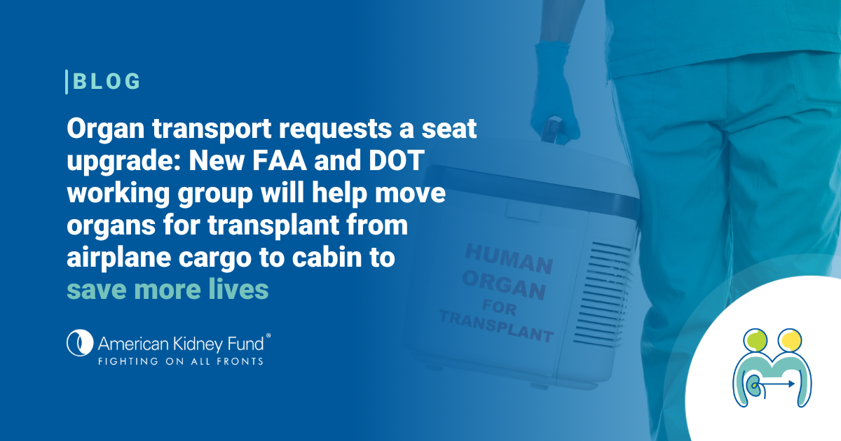 More than 90,000 Americans are on the kidney transplant waiting list. In 2023, just over 28,000 — or about 1 or 4 — were able to get a kidney. With so many lives at stake, it is paramount that when a kidney becomes available, the waiting patient receives it. However, over 170 kidneys have been lost in commercial air transportation in a five-year period (latest data is from 2019), and there were about 370 near misses. A "near miss," is defined as a two-hour delay from the anticipated arrival of the organ. The working group will be formed to help make sure that these losses and near misses do not continue.