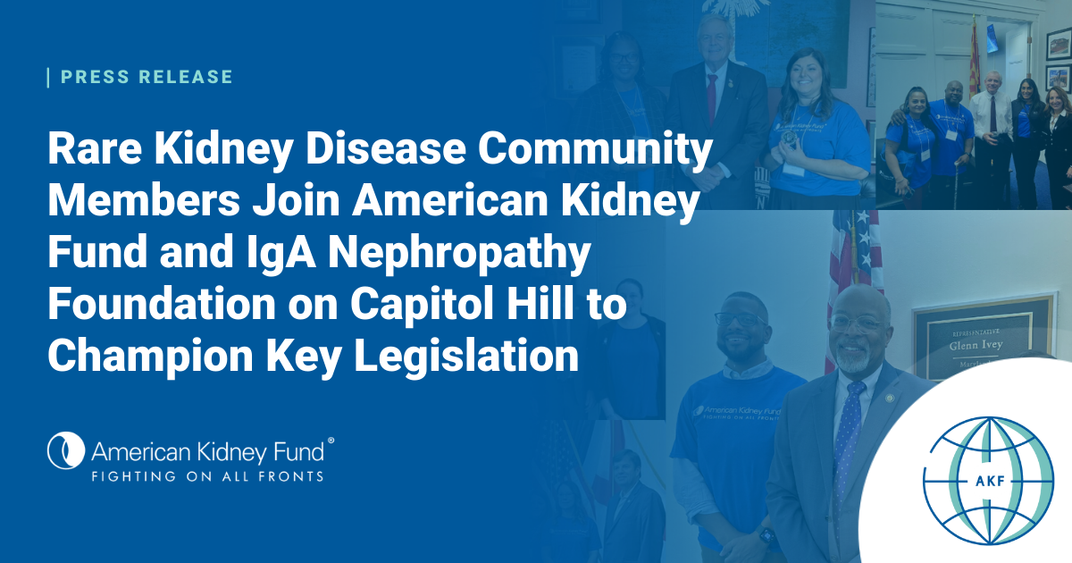"By passing these bills, Congress will help ensure that health care professionals will have the knowledge and information they need to provide personalized, quality treatment to people living with rare kidney disease and living kidney donors will have the support they deserve, which will ultimately save lives. We are proud to work alongside members of AKF's Rare Kidney Disease Action Network and the IgA Nephropathy Foundation to champion these critically important bills."