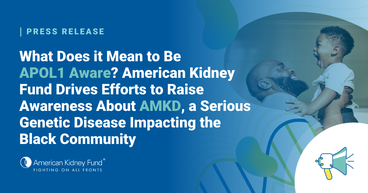ROCKVILLE, Md. (April 29, 2025) – Today the American Kidney Fund (AKF) announces the second annual APOL1-Mediated Kidney Disease (AMKD) Awareness Day, a day to educate communities about this genetic form of rapidly progressive kidney disease and how one's genes can impact their kidney health. AKF is encouraging people to be "APOL1 Aware" for AMKD Awareness Day and beyond as part of this national campaign, support for which is provided by Vertex Pharmaceuticals Incorporated.