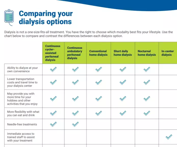 Each person’s ability to do dialysis at home is different and depends on medical and personal factors. Talk with your doctor or care team about whether this treatment might fit your needs and lifestyle. Together, you can review your options and decide what makes the most sense for you. Explore your dialysis options with our decision-making guide. This easy-to-use tool helps you compare treatments and choose the option that fits your life and goals.