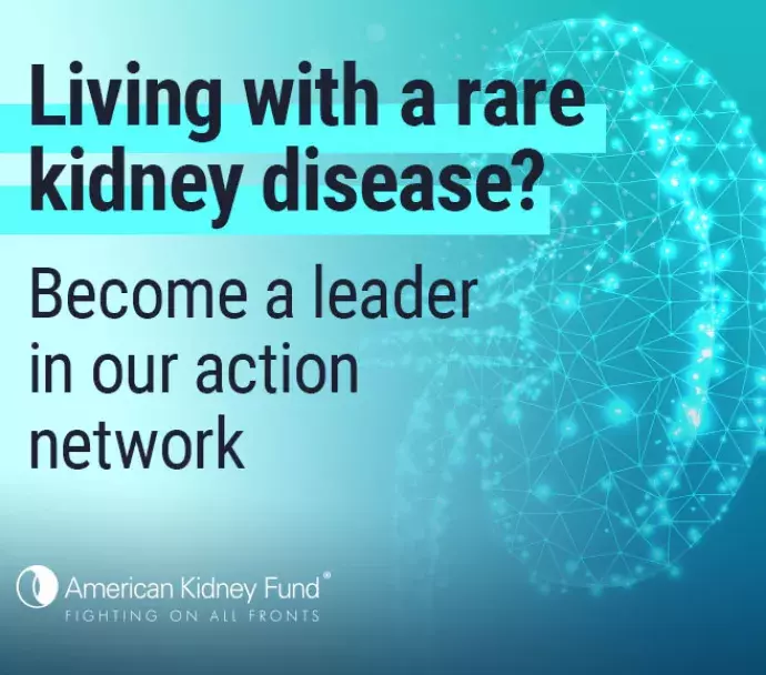 When you become a part of our welcoming Rare Kidney Disease Action Network you will have the chance to connect with other people who are also navigating the challenges of living with rare and genetic kidney diseases. Together, we'll explore the issues that affect kidney care, and you'll participate in engaging sessions on how to effectively communicate with the public and the people who make decisions about your health. From diagnosis to treatment, sharing your story can help others to benefit from your journey.