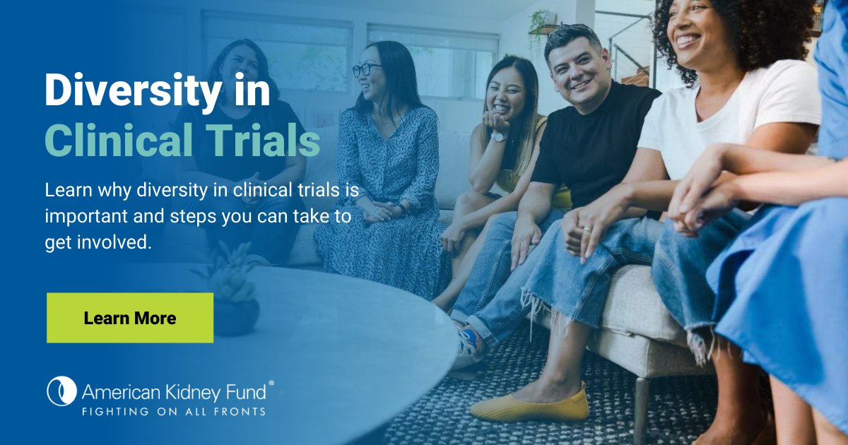 Clinical trial participants are key to developing safe treatments that work well to prevent, diagnose and treat kidney disease. The participants in clinical trials should represent the diverse group of people who have the health problem being studied and will use the treatment out in the world. However, Black, Hispanic, Native American and Asian American people are often underrepresented in clinical trials. This means that compared to the number of people from these communities who are living with kidney disease, few participate in clinical trials. Learn more about why diversity in clinical trials is important and consider why you should take part in a clinical trial.